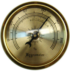 A 3″ hygrometer like this will fit in your case.