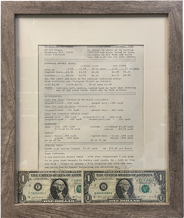 Charlie retired to Indiana, where he lived with his daughter and her family until his passing in 1990. Charles Double Reed Company, starting with the names and addresses of 600 double reed players I had collected in those last six months at Charlie’s storefront, began to grow.