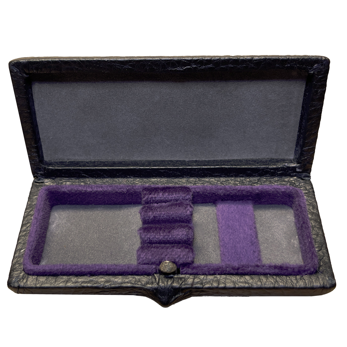 This compact black leather 3-reed case from Loree is original equipment that comes with a new Loree oboe. It’s made to fit perfectly in the reed case holder in the classic lozenge-style Loree oboe case and will fit in many other French-style oboe cases.