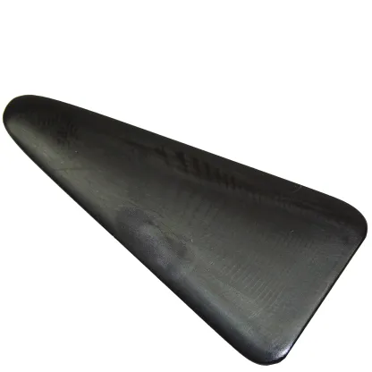 This opaque black plastic bassoon plaque has a slightly bellied center with one gently pointed end.