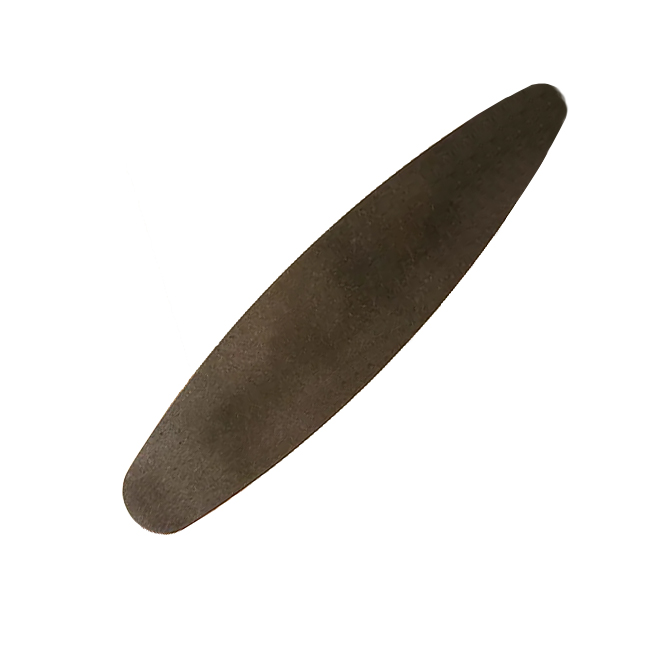 This thin, rounded-end steel plaque has a flat body which slides easily between the blades but won’t poke your finger.