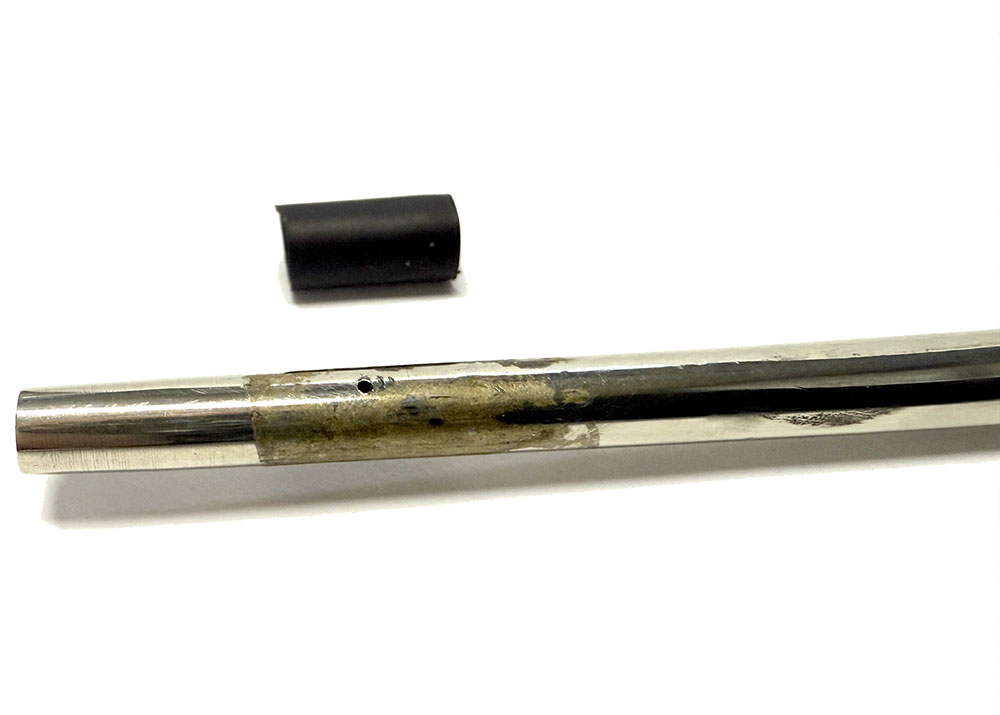 A high note vent drilled at 20mm from the tip. The movable length of shrink tubing is set to either leave the vent open or closed.