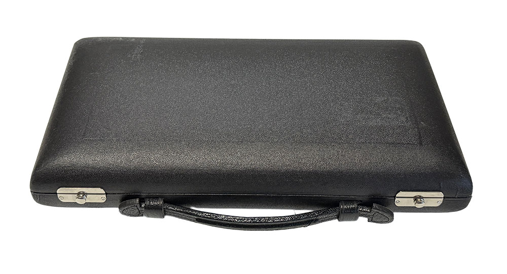 The original Loree hard shell case is in near mint condition. The Loree fitted cloth cover is in excellent condition with one flaw – the right hand zipper pull is gone.