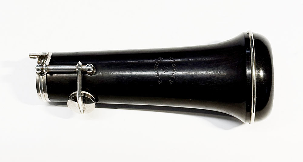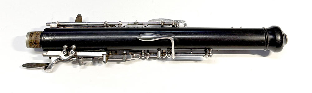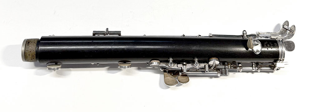 Body: The grenadilla wood body is in very good condition with average wear. There are two repaired cracks, one at the top of the middle joint, the other at the top of the bell. Both have been professionally repaired.