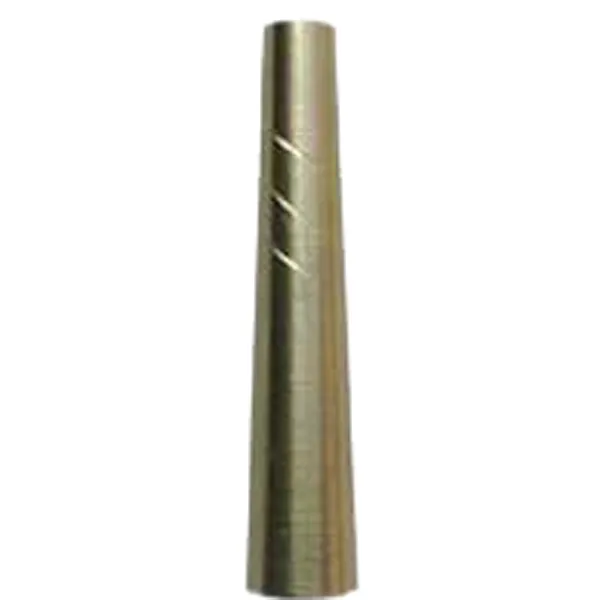 These staples are medium-thin walled with a medium-small bore. Triple spiral scribing helps secure the cane to the staple when tying. No cuff.
