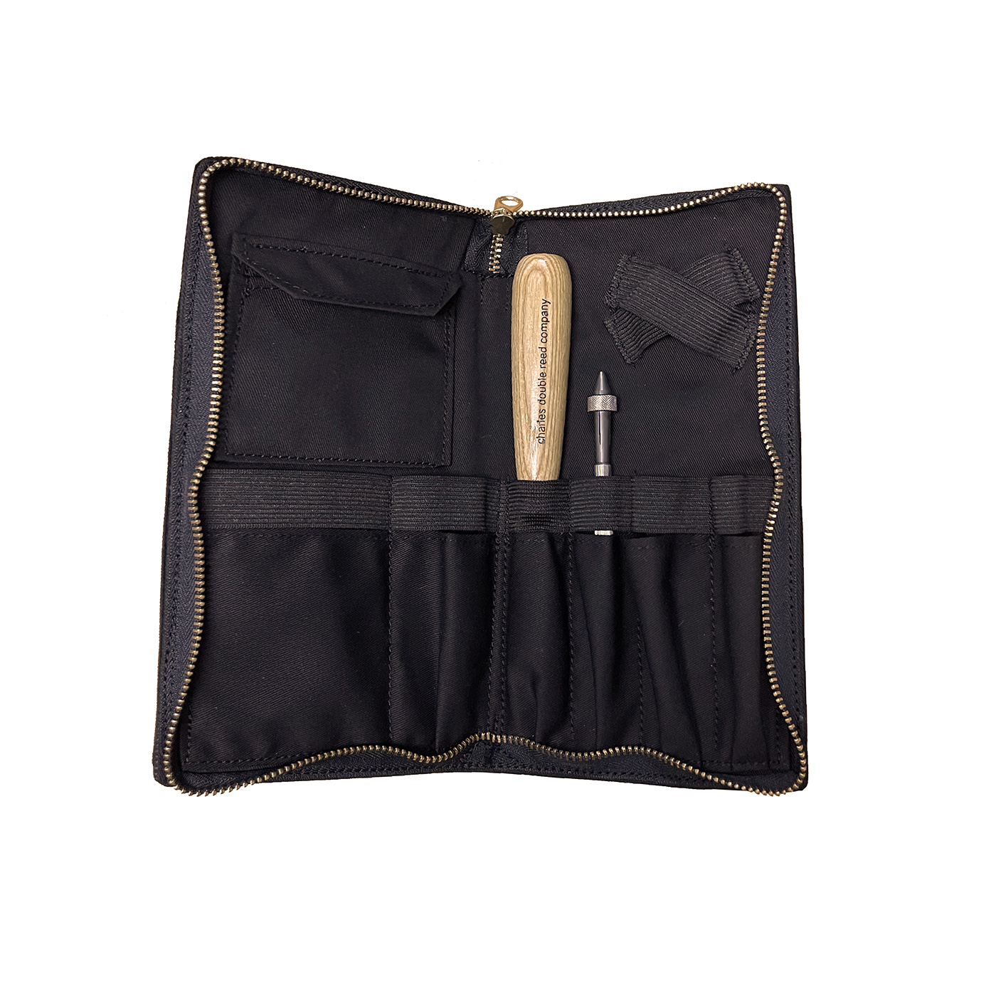 The brass zippers are substantial and high quality. This single-sized case offers a thinner profile and holds half the tool carrying capacity of the Wilson double-sized leather tool case.