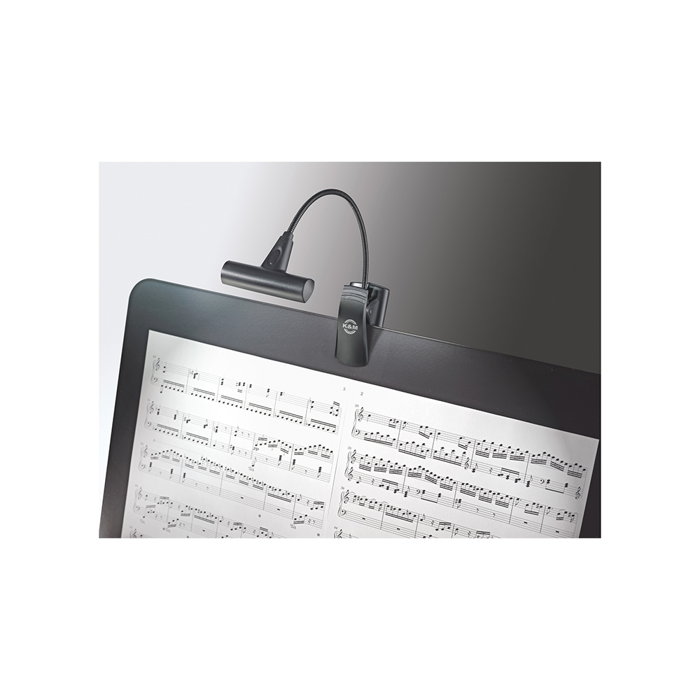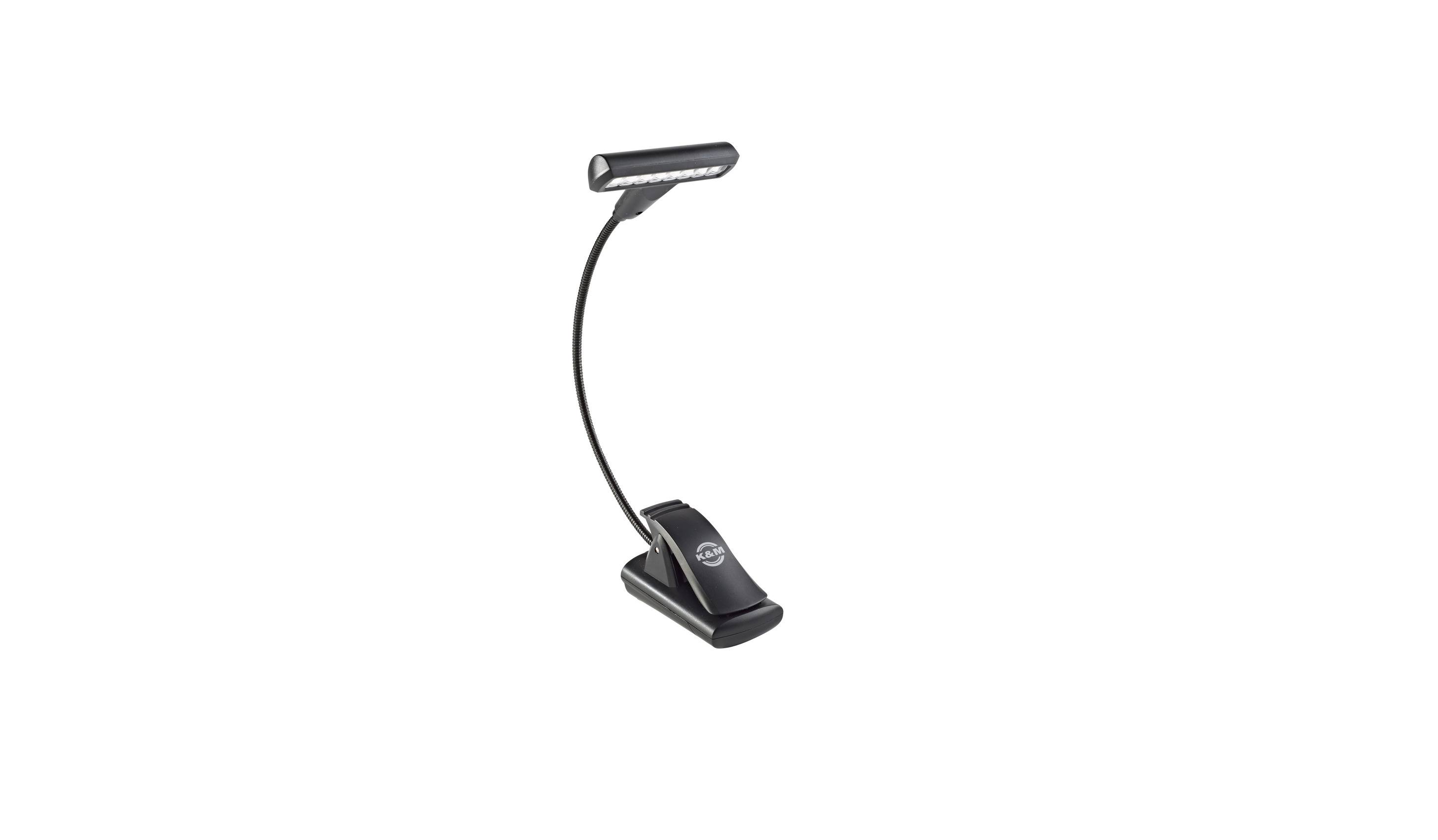 The extra-wide clip (up to 25 mm) attaches to music desks, table tops etc. It can also be used as a standing light.